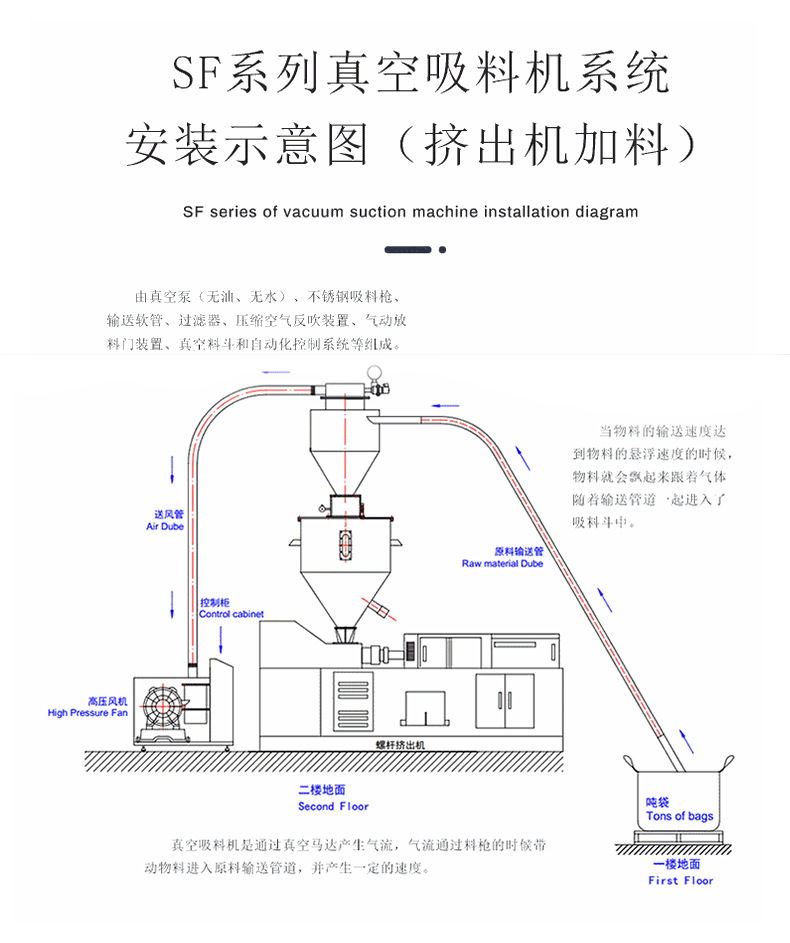 真空上料機又叫真空吸料機、真空輸送機、負壓上料機、真空加料機、主要針對工廠原料的輸送時,粉塵大、用人成本高、工人搬運累、環(huán)保不達標等一系列問題。
